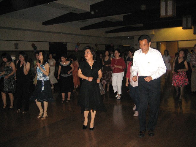 嫵媚的笑是晚會的一特色 迅雷班的趙慧屏 洪舜貞 陳秀萍伉儷 宏社班的陳金芳 睿社班的陳麗萍