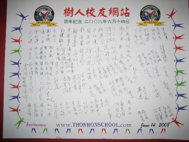 此次的周年紀念晚會在四個多月前就已經開始籌備與計劃,首先是申請舉辦場地,得到許可之後,我們開始定出時間表來練習合唱一些校園歌曲,這些歌曲,大部份校友都耳熟能詳,在小時候曾經唱過的,我們的宗旨是喚起校友們童年溫馨的回憶和對母校栽培的感恩,舞會開始時我們一起唱校歌,結尾時我們以 "珍重再見" 來向校友們揮手說再見,並約定明年再見,晚會在歡笑氣氛中結束。 這是一個很成功的晚會,要歸功於許多校友的參與和籌備,其中有韓江光校友主導和定出時間表以及召集校友們演練合唱校園歌曲,王永康校友撥出許多時間製作卡拉OK,方便校友們練習唱歌,施英媚校友所領導的炊事組,計有吳月秋、葉影華、鄭金梅、羅麗萍等為晚會準備餐點,鄭耀剛、鄭耀毅、余啟信、施英全等校友為晚會準備飲品, 我們的朋友Henry還幫忙我們去拿食物送到會場,黃漢璋指導集體舞,讓晚會生色不少,潘小嬌校友為晚會司儀,主導晚會儀式,我們也感謝三合一班的洪舜琴、韓碧娟、潘正榮、鄭金菊,斌社班的施英敏、潘正明、顏美倩、及施英嫣學姊參與合唱組唱校園歌曲,我們也特別感謝迅雷班的編輯組王麗娥、趙慧屏、李韶華、潘小嬌等學妹參與我們的籌備工作,我們也謝謝林明福學弟給我們提供射影機和螢幕,使歌唱節目方便不少。