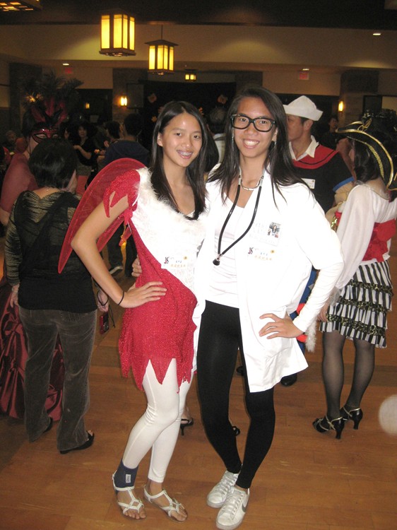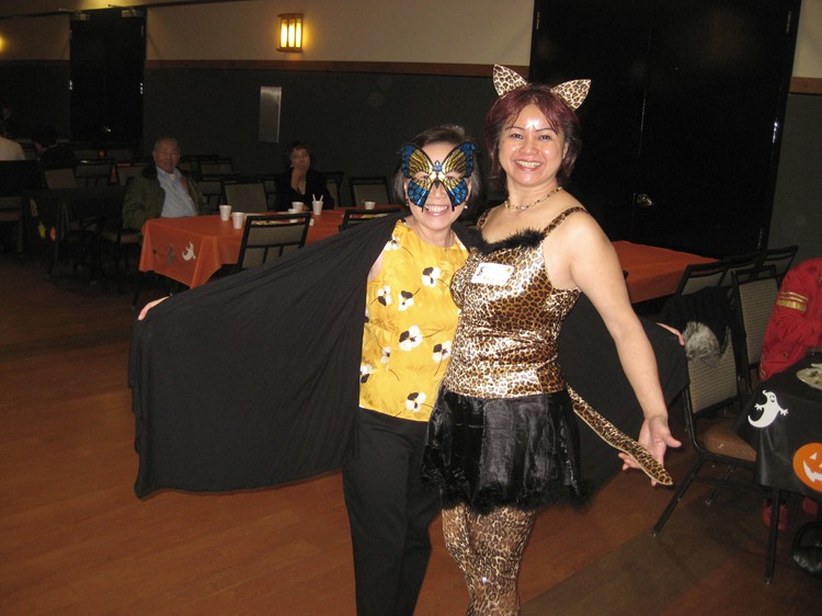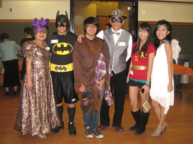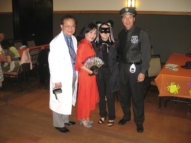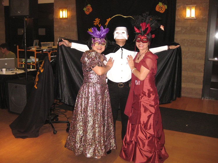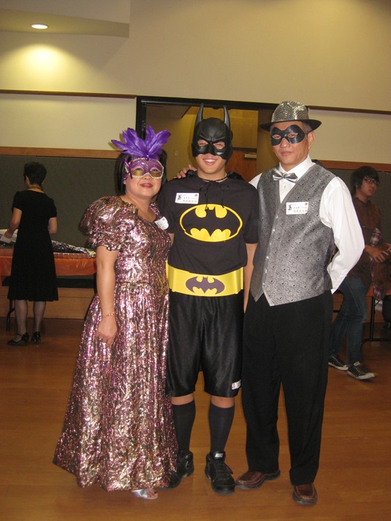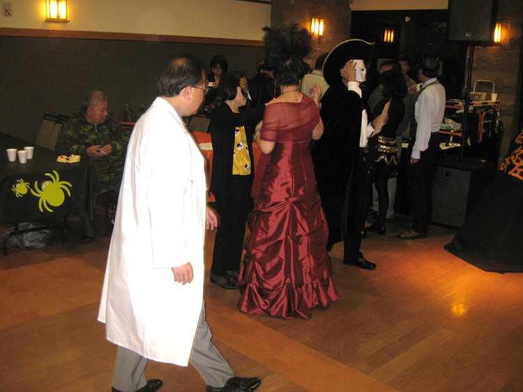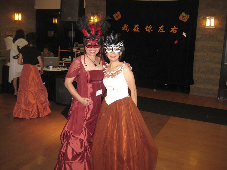 十月卅日萬聖節前夕,我們在洛杉磯郊區的柔似蜜市、舉辦了一個別開生面的化裝舞會。美國是一個年輕的民族,在這個傳統的節日裡、大人們跟著孩子們玩,扮鬼扮馬,度過這個很有意義的節日。 施英嫣姐出了一個“鬼主意”,她開的婚紗店裡有許多晚禮服與歐洲中世紀的晚裝,提議我們女士們每人選一件晚裝穿上、然後戴上面具。男士們則選一件西裝背心,戴上面具,所有都由英嫣姐贊助,我們有了這樣一位“大財主”贊助,使舞會生色不少。其他與會者,可裝扮各式各樣的“鬼怪”來慶祝這個傳統節日。 在此相簿裡,各位將看到舞會歡樂氣氛的縮影。