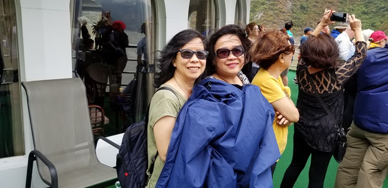船上的兩位美女張淑美、老亮祿