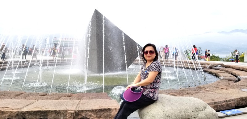 羅麗萍,展示廳外的噴水池。