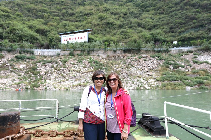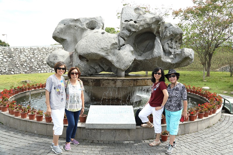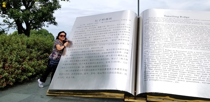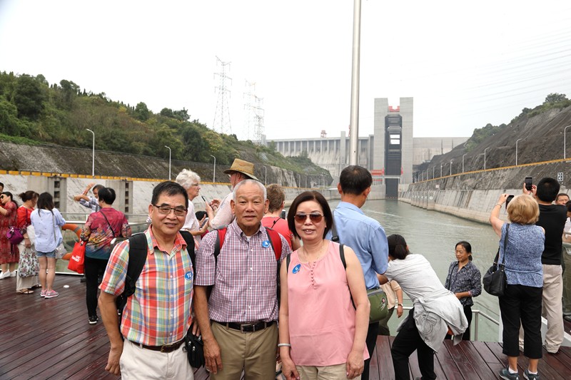張淑美、吳彩雲、許淑貞,在三峽大壩模型展示廳前。