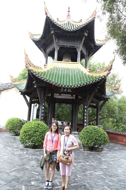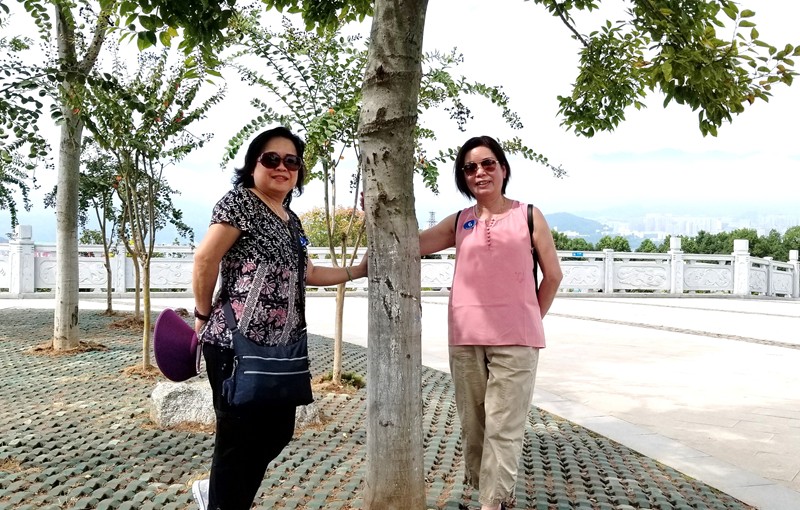 吳月秋、張淑美,兩位美女身後的大榕樹據說是八百多年前劉禹錫任夔州刺史時所種的。
