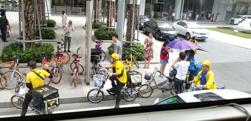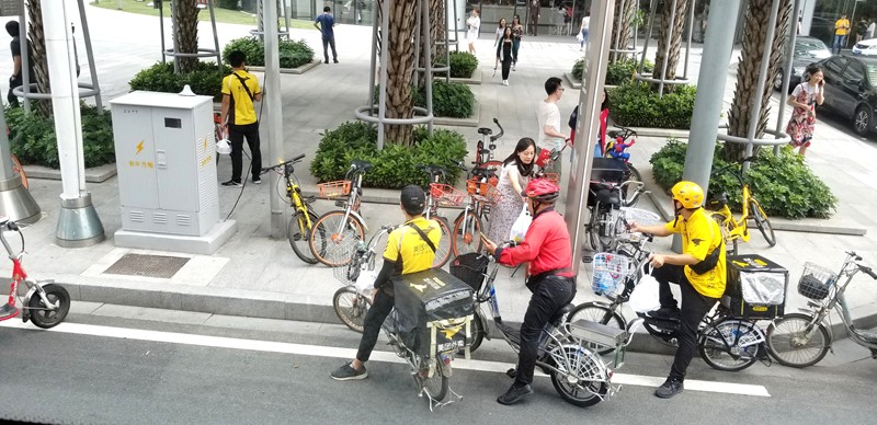 中午時刻的午餐快遞,看制服顏色拾取。