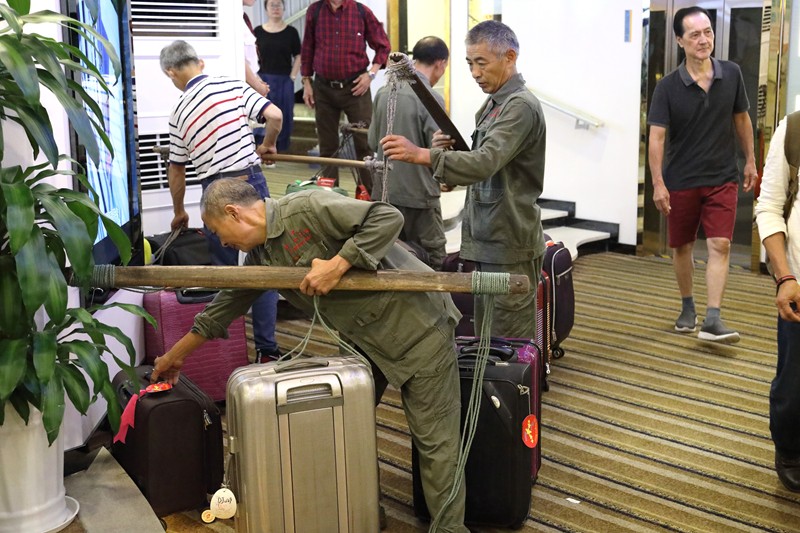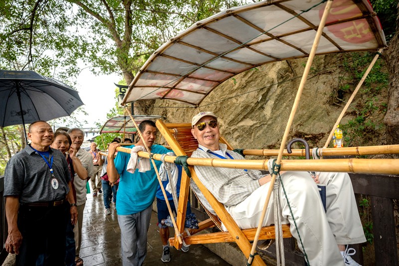 潘正英老師坐轎子上山,若有潘老師的年紀,我也會坐轎子上山,一是省力,二也是給轎夫們一點生意做,一舉兩得,何樂而不為呢?