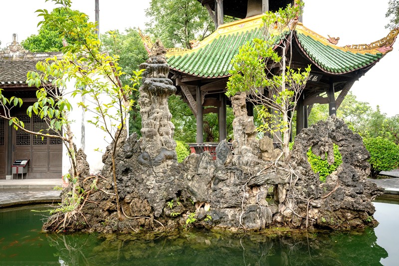 美麗的池中亭子與小島