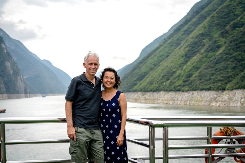 Benjamin、吳鑫明、Carolyn、陳錦珠,我們分別搭乘此種船在長江江上瀏覽江邊風景。