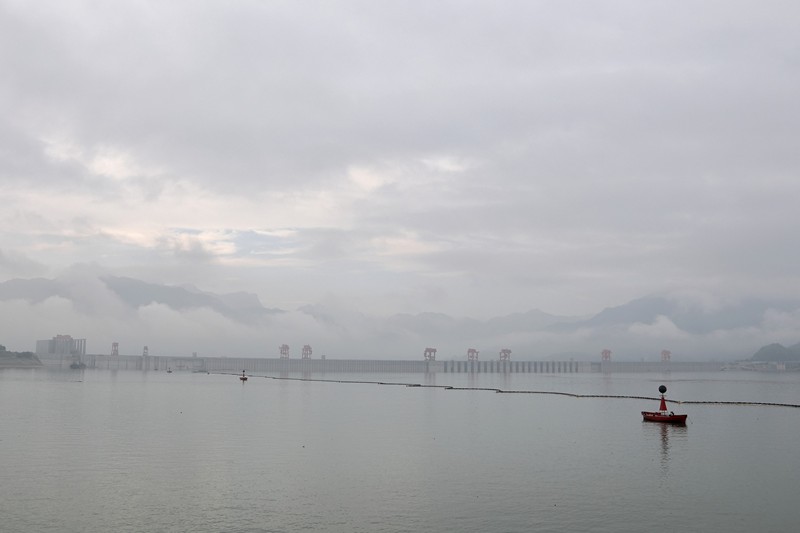 雲霧瀰漫的三峽大壩
