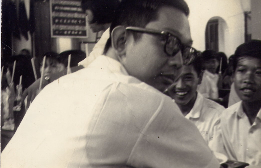 我們理社班初中畢業那年(1968年)正好是越戰戰火最為猛烈的一年. 當時樹人學校只辦到初級中學課程,家長們不放心自己的兒女遠離家庭到南部的西貢去唸高中. 得到各位熱心教育的校董們支持和鼓勵及在初次接任校長職務的羅鋒老師領導之下,首次創辦了高中課程,樹人學校也因此成為越南中部地區唯一的一所中文高級中學.學校的初中級別分上和下班,間隔半年的制度從此走入歷史, 為樹人學校全年制班開創了新的一頁. 高中一的英社班就在此境況下產生的.初中第卄二屆畢業的理社班與 第廿一屆畢業班(比我們高半年) 和第廾三屆畢業班(比我們低半年) 就此接合成為我們所謂的三合一班. 在戰亂的環境裡求學難免遇到意料不及事發生而中途輟學的同學不少,只有部份較為幸運的同學能繼續完成其高中課程而畢業. 三合一班因此都包含了所有上述三屆初中輟業或畢業的同學們.希望以此網頁的設立能給大家帶來學生時代美好的回憶,亦藉此聯繫失絡多年的同學. 編者 王永康 高中英社班主任 : 雷 筠老師 校長 : 羅 鋒 (鄭錦溪老師在本班畢業學年接任校長職務) 英社高中一和高中二班主任為鄭錦溪老師兼數學導師