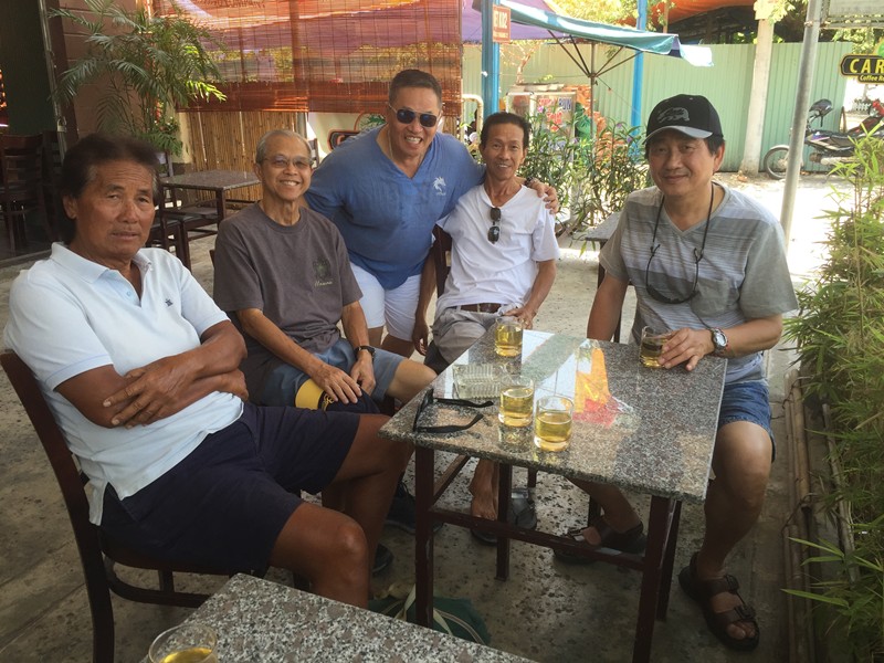 左一者為阿生。攝於另外海邊咖啡館, 這個咖啡館是由一位出生在峴港的美越僑回國特選峴港為退休地所開的。在 Youtube 上得知這位老板曾經是我洛市水電局退休的經理級職員。此次光臨可惜没見到本人。