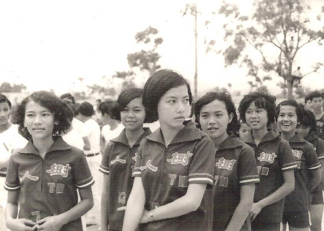 #1 鵬社班一九六六年小學第廿三屆畢業照 班導師鄭老師 #2 一九六九年行健班小學畢業與鵬社班初中畢業同學與老師合影 #3 鵬社班一九七二年高中畢業照 後排:林紀成 姚昌中 李長豪 楊振展 李林祥 陳志 雷筠老師 蘇天助 黃國和黃照明 郭順興 石禮福 黃文謹 前排:趙慧玲 吳碧蓮 張瑞梅 蔡雪兒 顏美杏 黃寶珍 李靜芳 葉婉如 彭麗娟 陳芳瑩 徐安華 彭麗琴 王秀嫻 蔣水鳳 陳彩秀 廖麗明 王文香 #4 由右至左 我們可以很清楚的看到:三合一班是英社 接著是鵬社與恆社 此兩班在高中時合為一班 志社與純社 在高中時也合為一班 名字只是一種稱呼而已 最重要的是校友們知道自己屬於那一班 那一屆畢業 就能聯絡上自己的同窗好友。 #5 建室內球場前的露天籃球場 後排鵬社 王文香 張瑞梅 李韻華 葉婉如 陳芳瑩 王秀嫻 潘彩莉 前排恒社王潔思 蔡雪兒 吳偉蓮 李妙華 李靜芳 蔣采蓉 陳彩秀 蔣水鳳 廖麗明 #6 樹人班際籃球賽開幕儀式 趙慧玲 葉婉如 洪舜琴 #7 樹人班際籃球賽開幕儀式裡的鵬社女將們 執牌者趙慧玲 葉婉如 陳芳瑩 王秀嫻 最右邊是唐振光老師 #8 樹人女子籃球隊 #9 樹人女子籃球隊有獎杯,看來成績傲人,獎杯是樹人女子籃球隊參加峴港市政府舉行的運動會得了冠軍,亞軍白色球衣是Phan Thanh Gian學校。頒獎地点是在峴港市足球場。 #10 李韻華 王秀嫻 葉婉如 蔡碧霞 趙慧屏 程昭鴻 #11 籃球比賽開幕式 #12 蔡碧霞 李韻華 王秀嫻 鄭錦溪校長 葉婉如 黃瓊芳 趙慧屏 前:黃春麗 關麗娟 吳XX 程昭鴻 #13 樹人校隊有蘇天助掌旗 必定所向無敵