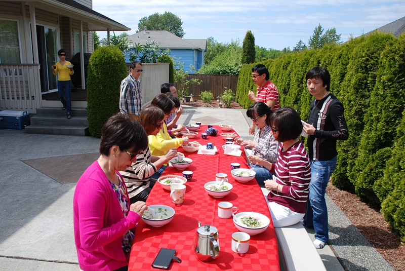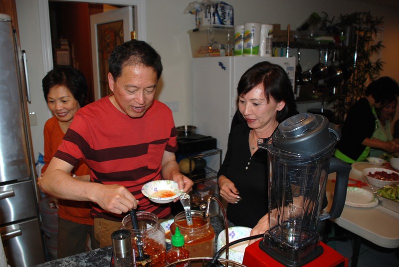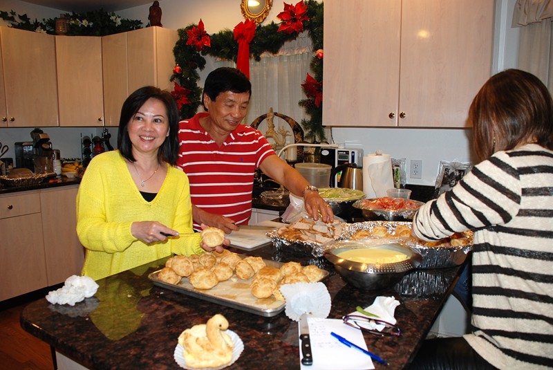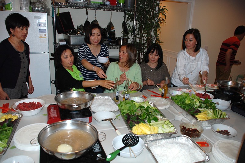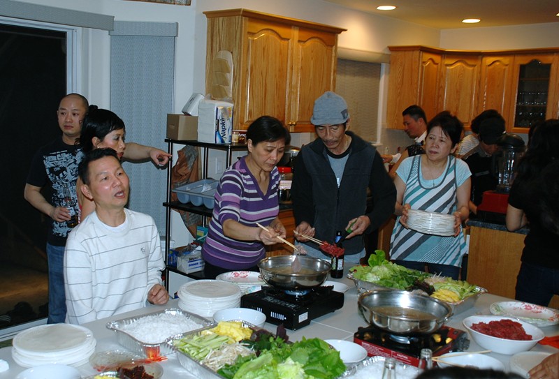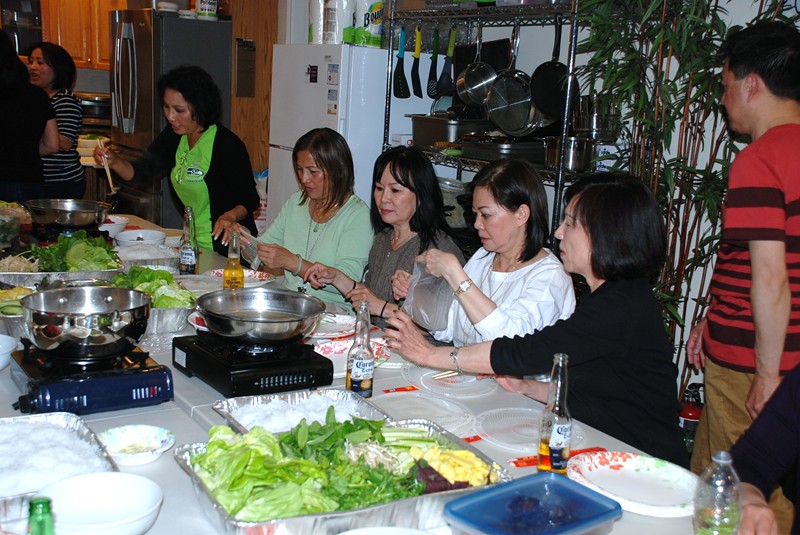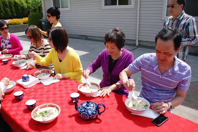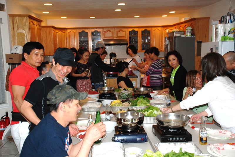 在家貴家聚餐, 吃 Thit Bo Cuon Nhum Dam (中高光頭者為家貴)