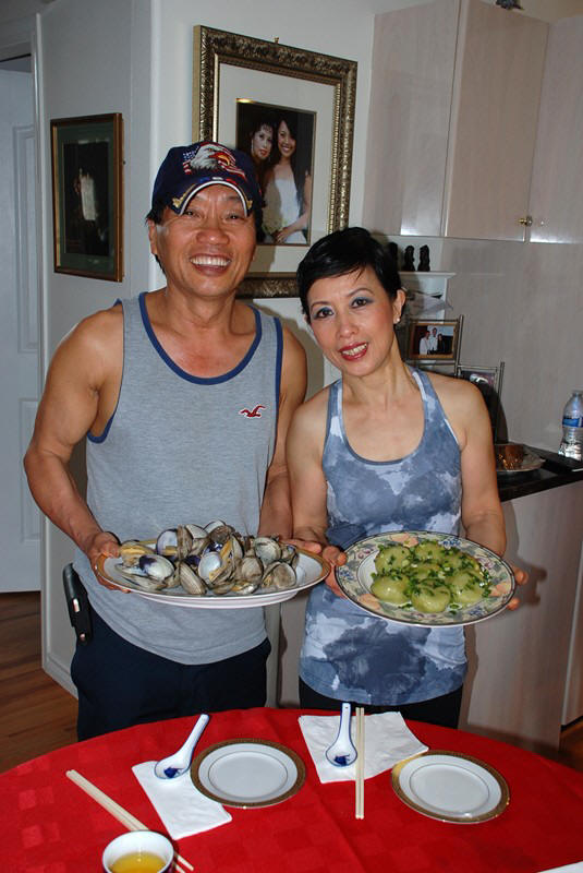 家强夫婦是退而不休的大厨師, 再加上本地豐富而新鮮的健康土產, 包括海鮮, 水果和蔬菜, 大顯一流厨藝接待遠朋。