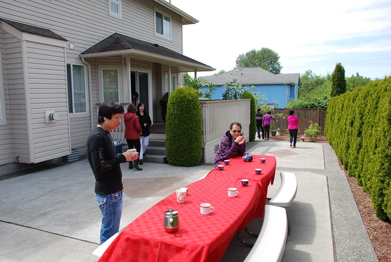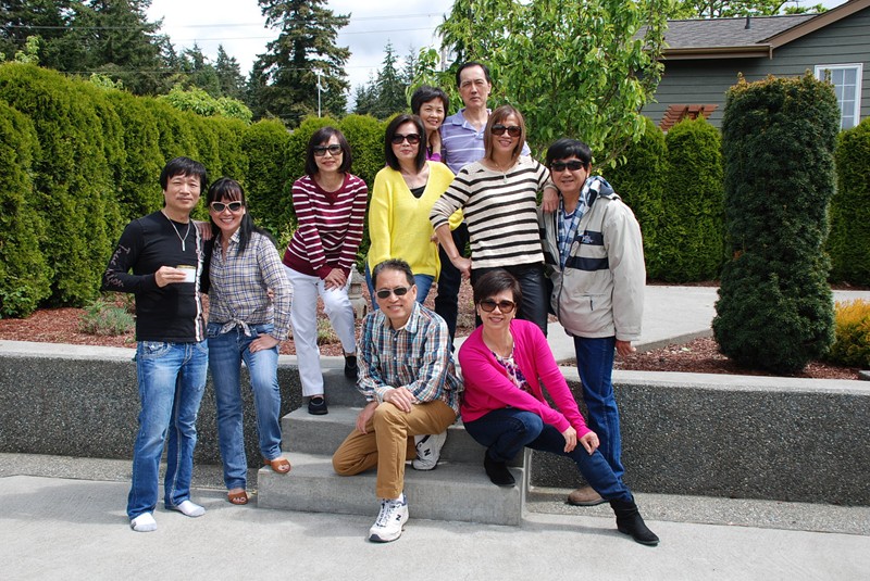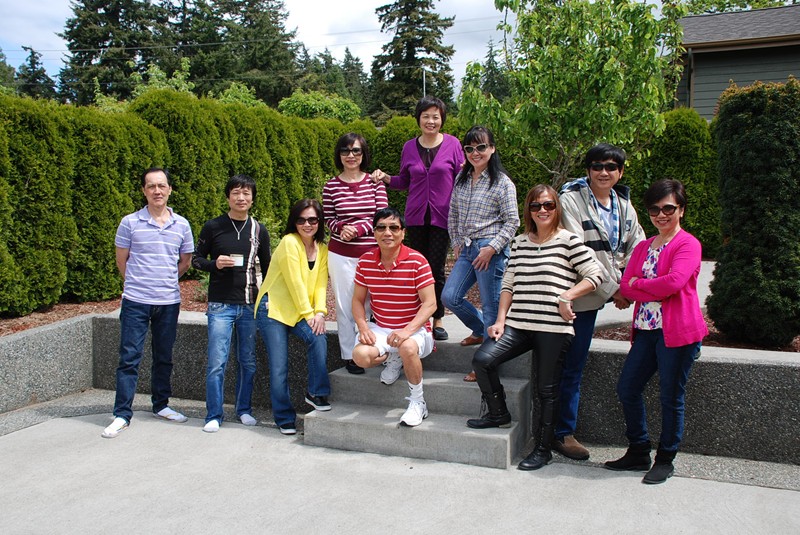 最先抵達 Bellingham 的團隊。圖中左起:明福 家漢 小嬌 方萍 家豪 素嬌 家强 永康 亮祿 正明 (美倩)