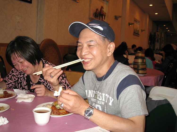 符碧娟是順化來的樹人校友,1966年初中畢業後、我們很少見面,她已旅居台灣多年。此次自台灣來美探親,是一個很難得的相聚機會,我們已有四十多年未見面了。她看起來還很年輕,若在外頭見面、我也一定可以一眼認出她來。我們本來是一群在越南出生的華僑,靠老天的安排,很幸運的能在異鄉聚首,實在是上天的厚待。小時候在求學時、做夢也沒想到有一天我們會遠在萬里外的美國相聚。她在洛杉磯只停留兩天,適逢我們六月初有遠行,六月三日要到加拿大去旅遊,只好安排在前一晚于柔似蜜市的一家越南餐館吃牛肉七味,我們通知居住於洛杉磯地區的斌社同窗前來相會,相見甚歡。