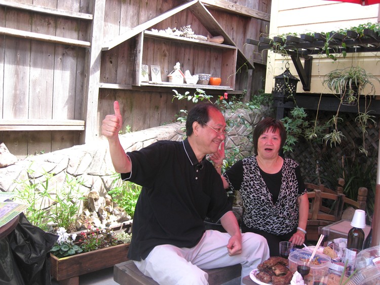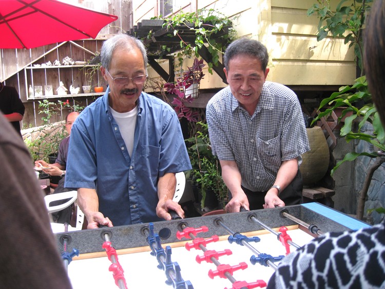 遠 一些的,暫且不談,就說最近的吧。剛過去的週末裡,(09/14/2013),我們北加州斌社班又有機會相聚了。說是中秋將臨,“迎月”也好,或是其他什麽名堂也罷,反正我們隔一段時間,就有些“心思思” ,又想再次聚首一堂。只要大家在時間上都配合得好,必然一呼“十”應,說來就來。這次由美珠與步雲兄作東,把他(她)們温暖,舒適的“小天堂”,再次開放歡迎我們登堂入室,一下子把前廳後院擠得滿滿的,開開心心鬧上一整天。這對主人翁笑稱他(她)倆府上“什麽都有,除了銀子”,“銀子”方面,我們不得而知,至於“什麽都有”,倒是真的。美珠的可口沙拉,步雲兄的三味 Bar b Que(雞肉,牛肉與排骨),後院大樹上成熟的蘋果(任我們去摘),院子裡的手控足球機 (任我們去玩),還有。。。反正你想要什麽,向步雲兄開個口,他就會想盡辦法给你找到。所以“什麽都有”,真不是“蓋”的。當然,最明顯的,就是美珠與步雲兄對我們的那一份心意與友誼,光就這一點,我們就覺得很足夠與可貴的了。