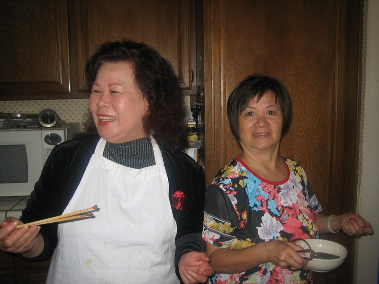 想必為了珍惜這份幸福,大家不計個人得失,全力付出,以求聚會一如以往般,圓滿劃上句點。此次志昌大顯身手,泡製改良式的 Mi Quang,以示對這位來自小城會安的姑娘帶來一絲家鄉風味。除了沿用傳统式 Mi Quang必備的鮮蝦,猪肉,配上原本口味的大量蔬菜,花生,炸蝦餅等之外,他選用了另一種不必加上色素,較為爽口的麵去料理,除了保持 Mi Quang原有的家鄉美味,食用之時,口感更佳,志昌的求新創意,可圈可點。麗萍則包辦了 Bun Thang,炸蝦,煎魚。。。等各項美食,纯熟手法,頗有大厨之風。璇珠夫婦則送上親自料理,清香可口,補身養顔的龟岺膏,以作餐後甜點。碧珠與強哥則整日忙裡忙外的,又是厨房,又是客廳到處張羅奔走,又是咖啡,又是红酒,又是水果,又是红豆沙,忙個不亦樂乎,真讓我們個個看在眼裡,銘感心中。美珠夫婦,艳芳夫婦亦一如既往般對老友們義不容辞,熱心参與大小事項,有忙即幫,二話不說。文錦於百忙當中,於午後亦携帶兩位女兒來到加入我們,雖然來去匆匆,却也儘可能不予缺席。遠在 San Diego的英敏亦在我們的聚會當日來電與同學們遂一問候交談,同窗情誼,平淡之中顯現其難能可貴。