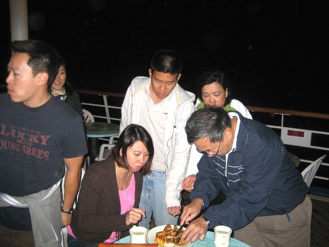 2008年九月中旬,我們組織四天遊輪遊,一共十八人,其中有樹人校友的斌社、文社、英社、鵬社班等與樹人在美國的下一代,九月十一日由加州南部的聖地牙哥市出發,直下墨西哥巴哈半島的聖路卡斯角登陸,遊玩一天,再回到遊輪上,轉航回聖地牙哥市,九月十五日結束全部旅程,船上和半島上的活動,在以下的相簿裡,可詳見我們在船上的生活。在這四天的旅程裡,我們在遊輪上渡過了一個很特別的中秋節,當晚風大月朦朧,畢竟我們渡過了一個快樂的中秋節。 出發前在聖地牙哥的施英敏家集合 準備出發 準備出發 歡樂的心情可想而知 遊輪上的第一餐 樹人的年輕一代 Crystal Tom Valerie Kevin Dan 樹人校友中生代 施英敏 黄漢璋 潘正明 鄭耀剛 羅麗萍 顏美倩 施英媚 施英嫣 遊輪上望去的聖地牙哥海港 他們是戴著墨鏡的007成員? 潘正明 羅麗萍 顏美倩 黄漢璋 施英媚 施英嫣 施英敏 潘正明 顏美倩 黄漢璋 施英敏 鄭耀剛 施英媚 羅麗萍 施英嫣 羅麗萍王永健伉儷 施英敏 黄漢璋 伉儷 潘正明 顏美倩 伉儷 施英媚 鄭耀剛 伉儷 潘正明 顏美倩伉儷 羅麗萍王永健伉儷 施英敏 黄漢璋 伉儷 王永健 羅麗萍伉儷 羅麗萍 黄漢璋 顏美倩 潘正明 黄漢璋 施英敏 羅麗萍 羅麗萍 王永健 黄漢璋 施英敏 顏美倩 潘正明 羅麗萍 王永健 羅麗萍 施英媚 鄭耀剛 Kevin 王可文 清晨在遊輪上的籃球場 王永健 清晨在遊輪上的籃球場 清晨在遊輪上的排排舞 line dance 清晨在遊輪上的排排舞 line dance 清晨在遊輪上的排排舞 line dance 清晨在遊輪上的排排舞 line dance 羅麗萍 施英嫣 施英媚 施英敏 快樂時光 施英敏 黄漢璋 潘正明 顏美倩 羅麗萍 施英嫣 施英媚 鄭耀剛 王永健 奥運會徑跑? 奥運會徑跑? 奥運會徑跑? 奥運會徑跑?王永健是金牌得主? 奥運會徑跑起跑? 晚會的甜点 羅麗萍 王永健 王可文 晚餐前合影 黄漢璋 施英敏 施英嫣 施英媚 鄭耀剛 晚餐前合影 晚餐前合影 王可文 校友的年輕一代 王可文 羅麗萍 王永健 王永健 羅麗萍 顏美倩 潘正明 黄漢璋 施英敏 施英媚 鄭耀剛 施英嫣 父子 王可文 王永健 王永健 羅麗萍 Shirley 施英敏 Charles 黄漢璋 施英嫣 施英媚 施英訓夫人阿珠 Crystal Valerie Tom 施英訓 鄭耀剛 Crystal & Dan 後排:施英訓 Charles 王永健 Kevin 鄭耀剛 Dan 前排:Shirley 阿珠 羅麗萍 Crystal 施英媚 施英嫣 Valerie Tom 顏美倩 潘正明 黄漢璋 施英敏 Dan Crystal & Kevin 施英敏 黄漢璋 Valerie & Tom Shirley (鵬社班吳坤波女兒) 阿珠 施英訓 伉儷 兒子 Charles 施英媚 羅麗萍 施英敏 黄漢璋 Valerie & Tom 斌社 施英敏 王永健 斌社 施英敏 王永健 雞尾酒是船長的接代 機械長與年輕一代交談 施英媚 施英嫣 Valerie & Tom 我們所乘的遊輪 Carnival 墨西哥巴哈半島的聖路卡斯角碼頭 墨西哥巴哈半島的聖路卡斯角碼頭 等待上小船遊灠 等待上小船遊灠 黄漢璋 羅麗萍 顏美倩 鄭耀剛 Kevin Charles 羅麗萍 排長龍等待上小船 排長龍等待上小船 在小遊艇上 施英媚 鄭耀剛 Kevin 王永健 羅麗萍 王可文 顏美倩 Tom Valerie 黄漢璋 施英敏 王永健 施英媚 施英嫣 鄭耀剛 從小遊艇上望聖路卡斯角 從小遊艇上望遊輪Carnival 王可文笑的時候雙眼成一線 我們笑他〝笑時不見天地〞 007女郎 施英媚 施英媚 羅麗萍 從小遊艇上望遊輪Carnival 王永健 王永健 & Crystal 王永健 羅麗萍 王可文 漂亮的海上石山 漂亮的海上石山 漂亮的海上石山 羅麗萍 王可文 007女郎 羅麗萍 黄漢璋 羅麗萍 漂亮的海上石山 施英媚 羅麗萍 施英嫣 漂亮的海上石山 半島上的美麗景色 半島上的美麗景色 半島上的美麗景色 羅麗萍 黄漢璋 施英嫣 美女如雲 施英媚 羅麗萍 施英嫣 黄漢璋 顏美倩 美麗的海灘 美麗的花圃 Carnival 遊輪 美麗的日落 餐室裡的晚餐 點菜 施英嫣 施英媚 鄭耀剛 羅麗萍 王永健 阿珠 施英訓 伉儷 潘正明 顏美倩 等待上菜 樹人的年輕 e-世代 Valerie & Tom Charles & Shirley & Valerie 夜總會裡的 "群魔亂舞" 夜總會裡的 "群魔亂舞" 夜總會裡的樂隊 夜總會裡的美女 從遊輪上的賭場出來 就是這個樣子 無精打彩 輸了錢 也 "輸掉了心情" 狂歡舞會的甜品與水果 狂歡舞會的甜品與水果 狂歡舞會的甜品與水果 狂歡舞會的甜品與水果 狂歡舞會的甜品與水果前 羅麗萍 狂歡舞會的甜品與水果前 王永健 羅麗萍 狂歡舞會的甜品與水果前 黄漢璋 狂歡舞會的排排舞 line dance 狂歡舞會的排排舞 line dance 狂歡舞會的排排舞 line dance 狂歡舞會的長龍舞 狂歡舞會的長龍舞 狂歡舞會的長龍舞 狂歡舞會的長龍舞 狂歡舞會的長龍舞 與周小姐約會?老僧入定?白日夢? 更像老僧入定 冰雕 冰雕 冰雕 還有比吃更重要的嗎? 阿珠 施英訓 伉儷 羅麗萍 王永健 像中有像 施英敏 黄漢璋 Valerie Tom Charles & Shirley Crystal Dan & Kevin 今天是中秋節 也是 Tom 的生日 卅二年前我(王永健)和施英敏在產房外等待 Tom 降臨到這人世间 轉眼已過了卅二個寒暑 光陰似箭 全體與 Tom 共慶生日 掛在天邊的中秋月 遊輪船尾 中秋月餅與米茶 中秋夜 中秋月餅與米茶 中秋月餅與米茶 中秋月餅與米茶 中秋月餅與米茶 中秋月餅與米茶 好吃 好吃 好茶 好茶 中秋夜的助興節目 等待離遊輪上岸回聖地牙哥 結束此四日的旅程 等待離遊輪上岸回聖地牙哥 結束此四日的旅程 等待離遊輪上岸回聖地牙哥 結束此四日的旅程 等待離遊輪上岸回聖地牙哥 結束此四日的旅程 鄭耀剛正在 "老僧入定" e-世代的等待有別於 "老僧入定" 的等