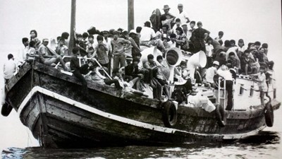 1977年暑假的一個晚上我們家陸續來了一批一批的峴港街坊每個人隨身帶了一個小包袱在我家後院集合等待天黑以後大貨車來接送上船偷渡。這一群來客裡面都是我平日熟悉的叔伯姑嬸和樹人校友們。每個人的臉上都露出既緊張又興奮的表情。