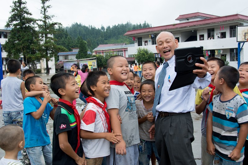 李廣茂以 Mini iPad 為孩子們拍照