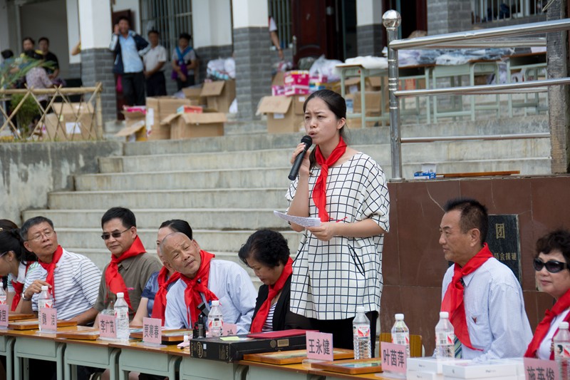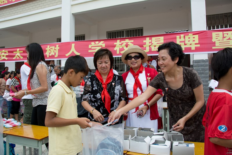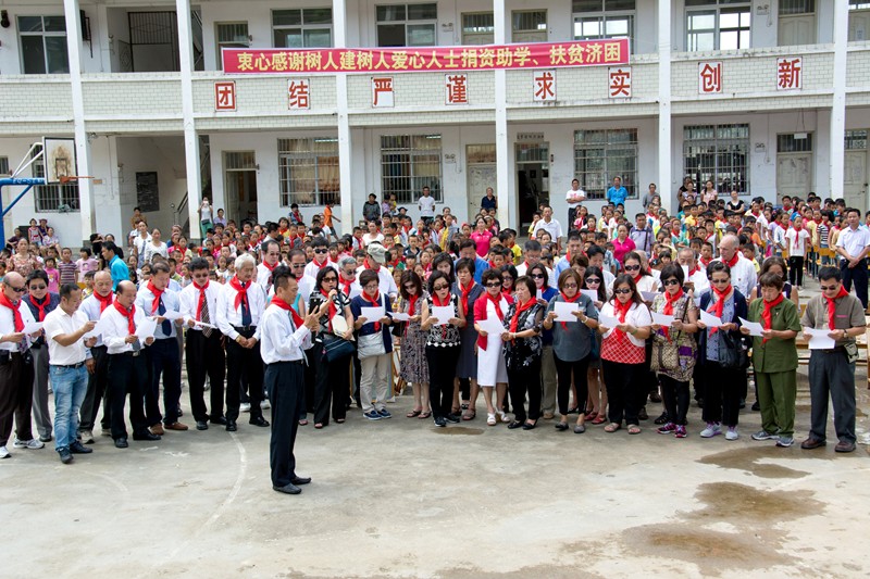 潘正桐宣讀『樹人建樹人愛心計劃』的獎學金宣言,每年前五位品學兼優的的小學畢業生,將得到『樹人建樹人愛心計劃』的好心人士贊助升學,完成孩子們的初中課程。
