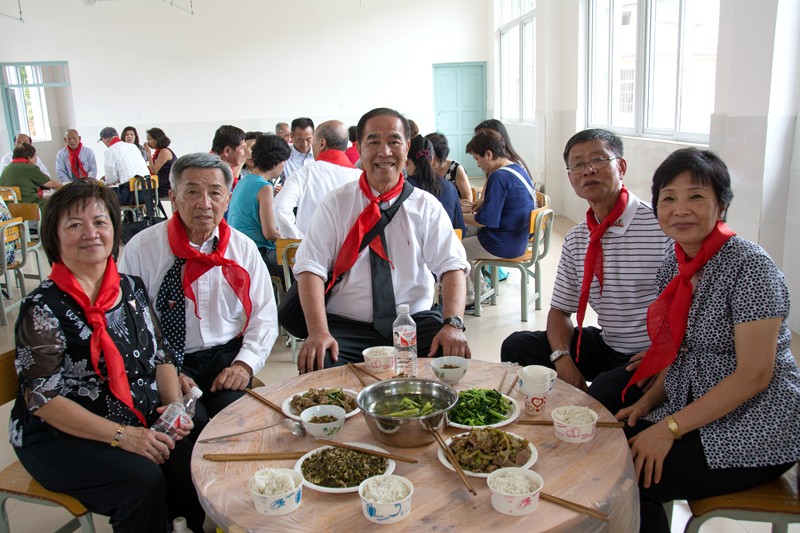 綁了紅巾,與孩子們拍照留念,老少相映成趣。她們叫她們做『阿姨』,其實,她們比她們的阿姨老多了!