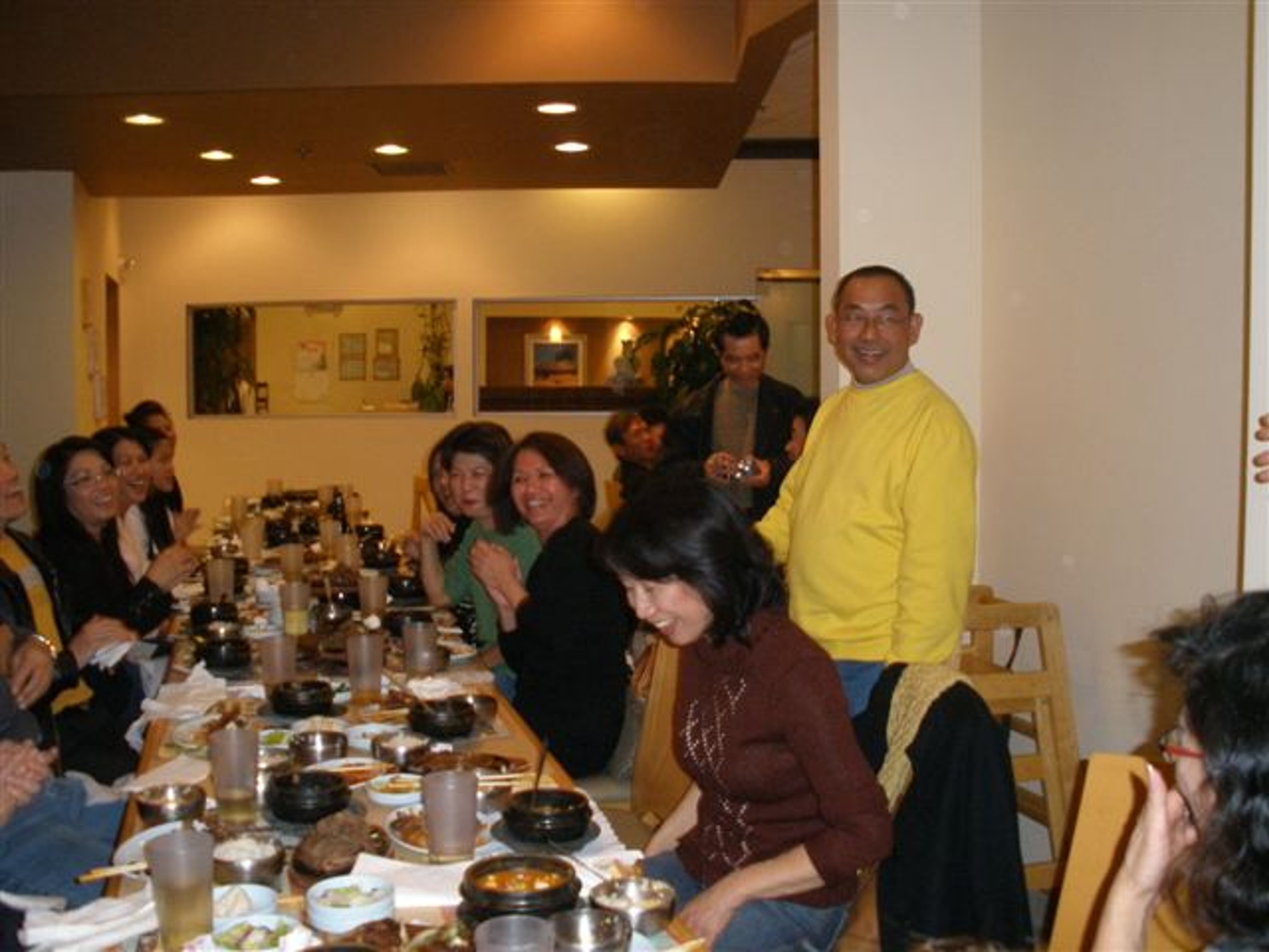 行健班美國洛杉磯市聚會 韓國豆腐屋餐館裡 歡聚一堂 穿黃衫者是泰國來美旅遊的韓荃光
