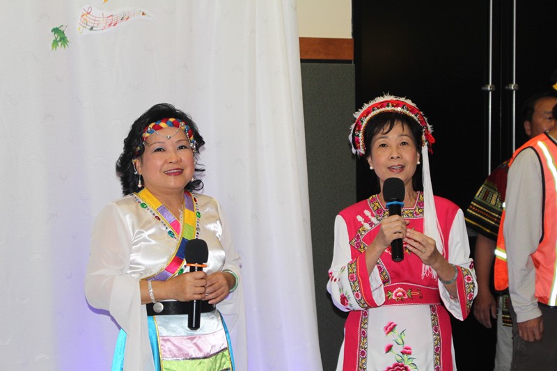 這個人是誰呢?Cheech & Chong 喜劇裡的 Tommy Chong 扮相。他敲門進來時我們不知道是誰邀請來的客人,他就站在會場的一角靜靜的看着我們唱歌、拍照,一聲不響。由於籌備組成員所邀請來的賓客我們都不全認得,我們懷疑此公來吃『霸王餐』,不請自來,就查問門票,若沒門票,『請自便!!!』,這位 Tommy Chong 說是編者王永健邀請的,編者仔細的打量之後問:『Are you。。。?Anh là 。。。? 你係邊個?你是誰?。。。』由於不知此公說何種語言,就用四種話問,結果我們終於認出『她』是誰,原來是王永康的老婆、編者的弟妹:老。。。亮。。。祿!!!