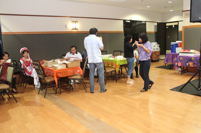 主辦單位成員忙碌於會場佈置與準備舞會事宜,百忙中,成員們正在填飽五臟廟,然後繼續籌備工作。