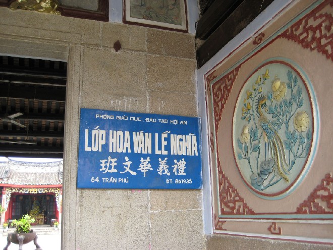三百多年前在明末清初的時候,華人已開始聚集于會安這小市鎮來經商。會安是越南最早對外開放的商埠之一,貿易非常的發達。隨後會安發展成一個重要的港口和商業中心。在這座小市鎮裡,我們到處都可以看到中國式的建築,而且還保存得很完整,在華人聚居的街道上,遊客還可以看到中國式的觀音廟與關帝廟及福建、廣肇、潮州、海南、中華等會館,禮義學校座落於中華(五幫)會館內,是以前華人子弟受中文教育的地方。 在此樹人校友網站非常感謝周志英校友和在越南的阿勇提供此相薄的所有照片,謝謝。 Website của Bạn Ái Hữu Trường Trung Học Thọ Nhơn Đà Nẵng xin thành thật cám ơn Dũng đã bõ nhiều thì giờ quý báo để chụp những hình ảnh này。