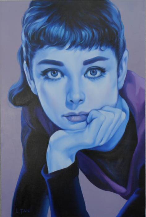 赫本令人感動的是超世代"美麗典範",她是落入人間的天使,我不忘情的時常畫我的偶像。