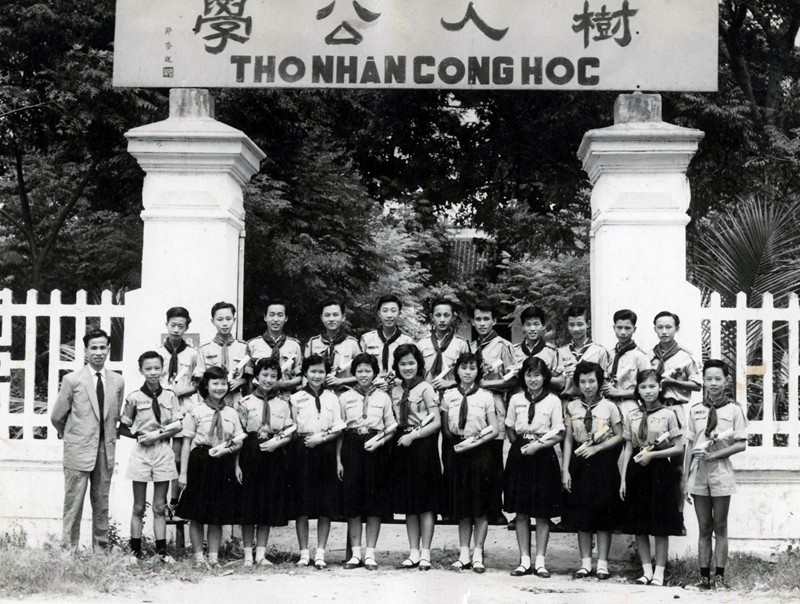 1958年初中畢業班與越文老師 黎光烷先生合影