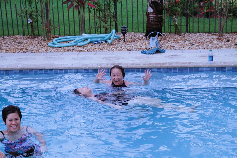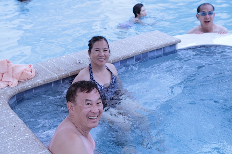 劉慶和、張淑美,只有張淑美有備無患,下海灘游泳。