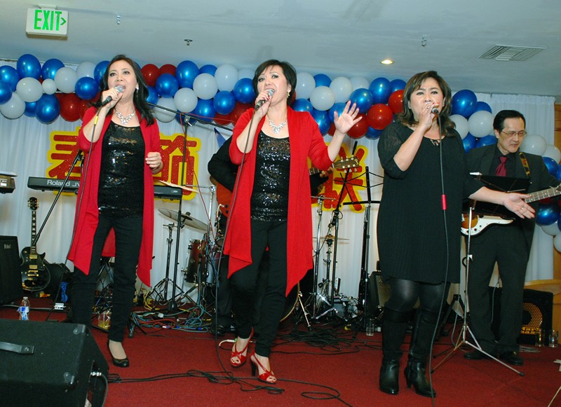 北加州 2014年 樹人校友春節晚会亮點之三 ( 樹人校友樂隊三年來首次登台, 卅分鐘的演出得到全場热烈的掌聲 )
