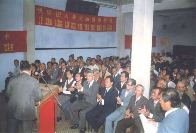 一九七九年潘董事長離開越南,旅居美國,雖然人在海外,心中還是懸念著仍然滯留於峴港的華僑子弟,擔心他們失去接受中文教育的機會。于一九八九年越南開放時趕回峴港,通過各種管道,終於以補習班的形式,重開中文班。峴港華僑子弟從此能夠享有接受中文教育的機會。