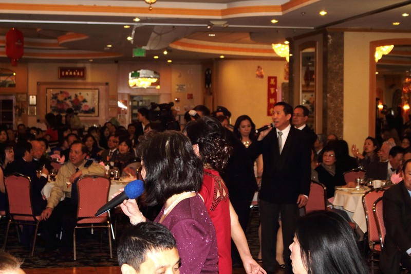 深圳來的牛連傑先生,看到海外樹人聯歡晚會的熱鬧場面,非常讚賞,上台致辭。