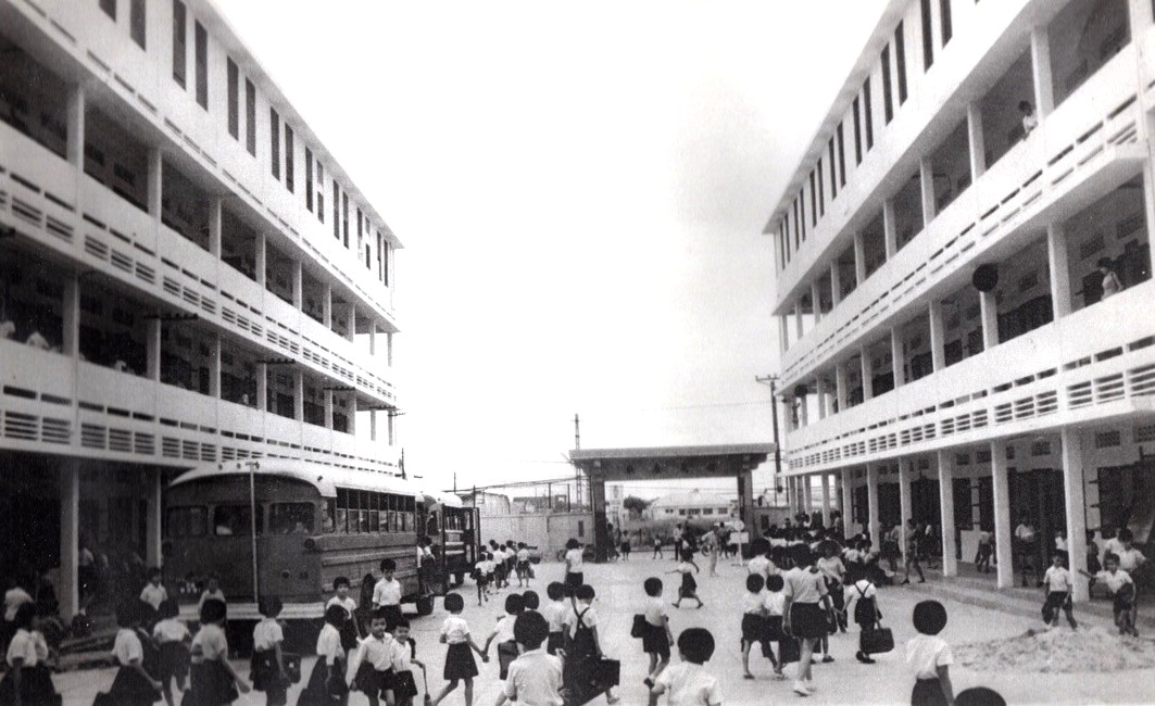 1975年前的樹人校舍 左邊是中華會館 前方是室內球場