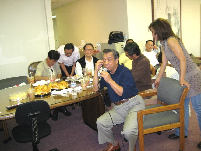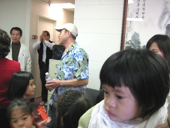 忠社班的趙汝發校友 , 請了所有居住在南加州的忠社同窗到橙縣的福祿壽商場相聚 , 這是二零零八年二月九日大年初三的同學聚會相簿 , 相片由王力群老亮采提供。 羅湘雯 (羅峰校長的女兒) 全家福 與丈夫女兒與兒子合影