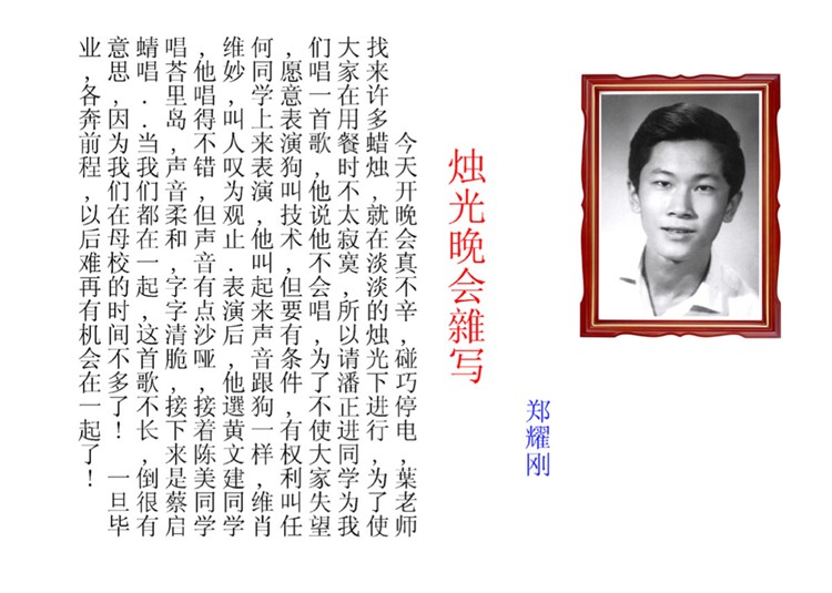 此紀念冊裡的相片是由仍滯留於峴港的文社班校友朱仕雲寄來贈于文社班同窗,今年的七月三日與四日之聚會,是旅居海外以來,文社班的最大聚會,許多已失去聯絡多年、有來自世界各地與美國其它州的文社校友來參與此盛舉,這是今年樹人校友的大活動之一。