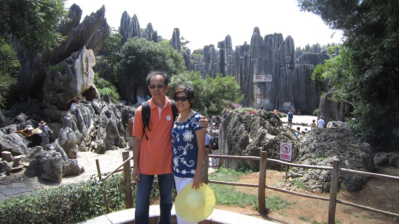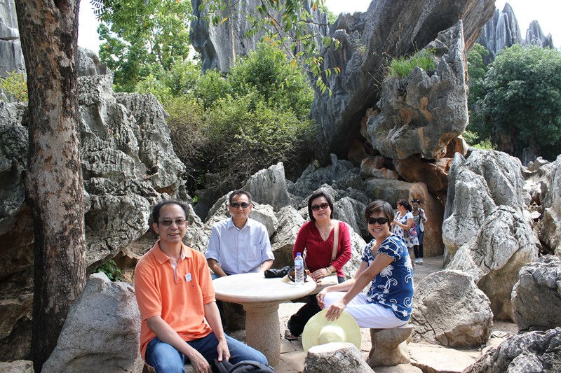 我們這次雲南行,主要目的是參加兩間樹人小學校舍落成典禮,同時也趁此機會,在雲貴一帶旅遊,雲南地區氣候溫和、四季如春,我們的第一個景點石林是在雲南首府昆明的郊區,此地怪石星羅棋布,據說幾億年前,這裡是海洋的底部,由於地殼變動,浮上地面,變成目前我們所看到的美景。