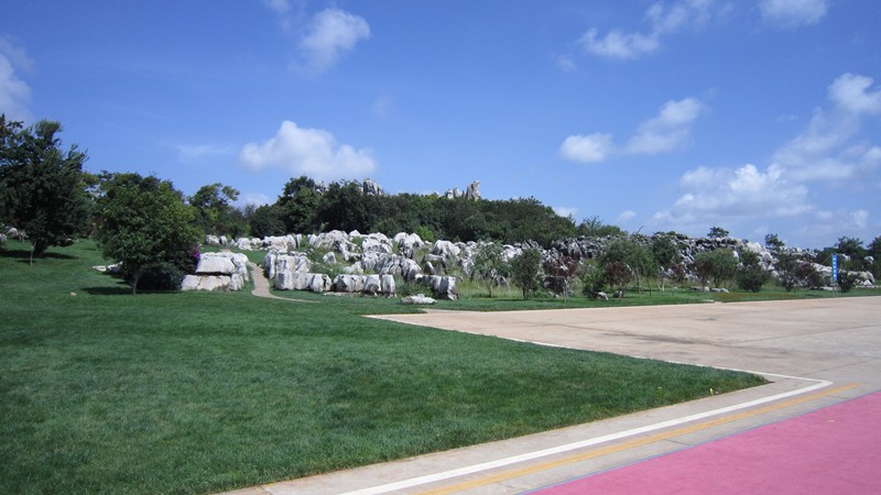 奇形怪狀的石塊,星羅棋布的擺在草坪上,任你想象,有的像野馬、有的像飛鳥怪禽。