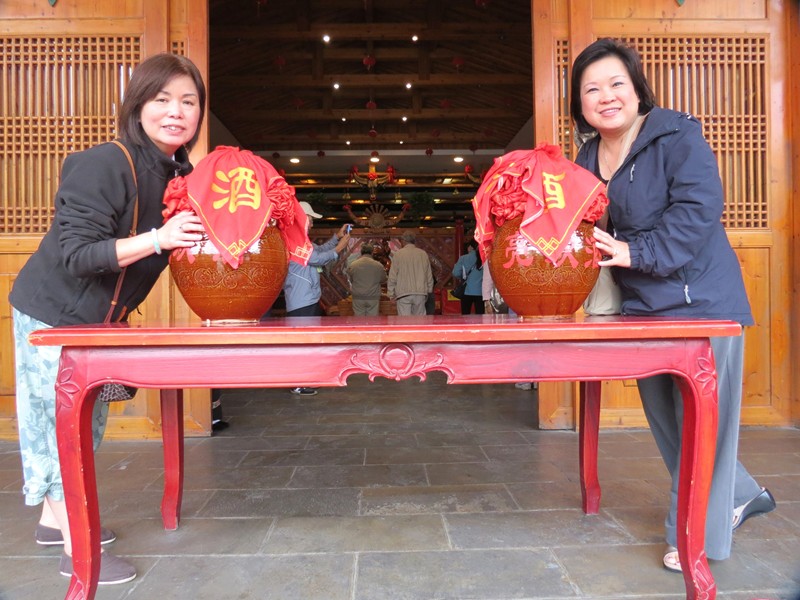 我們的貴州導遊小黃(右)把導遊工作交給這位專職講解員,她將引導我們進入屯堡文化區。