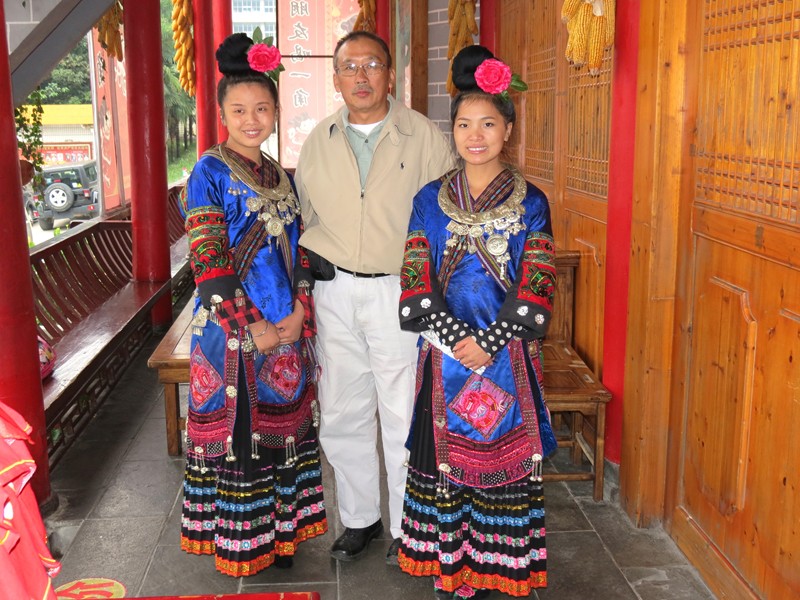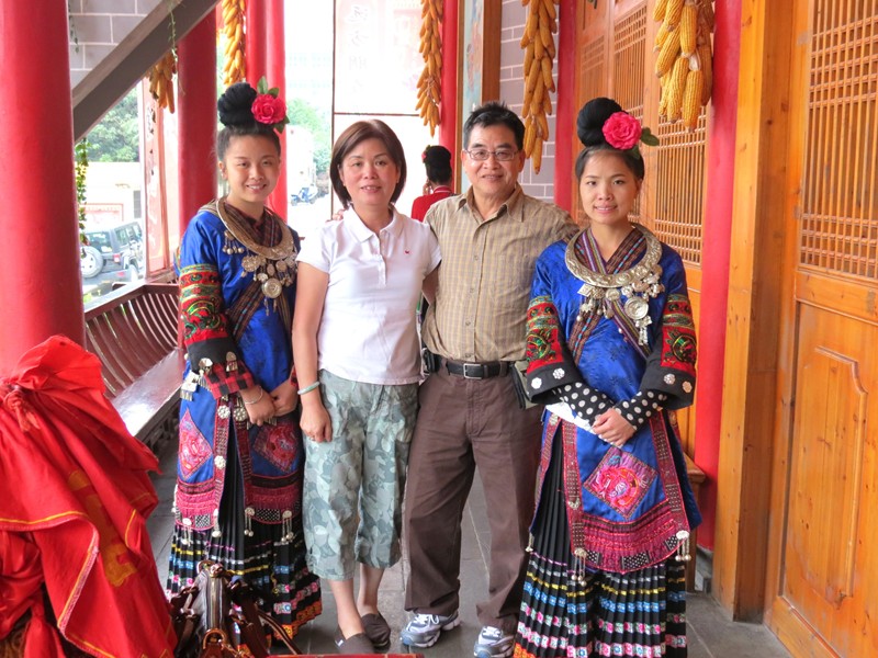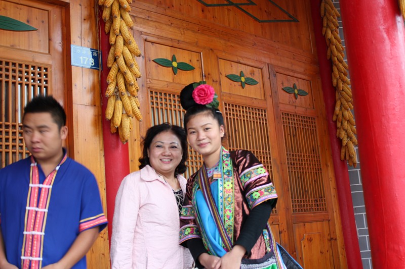 趙翠緣,苗族女子喜歡在頭上插一朵花。